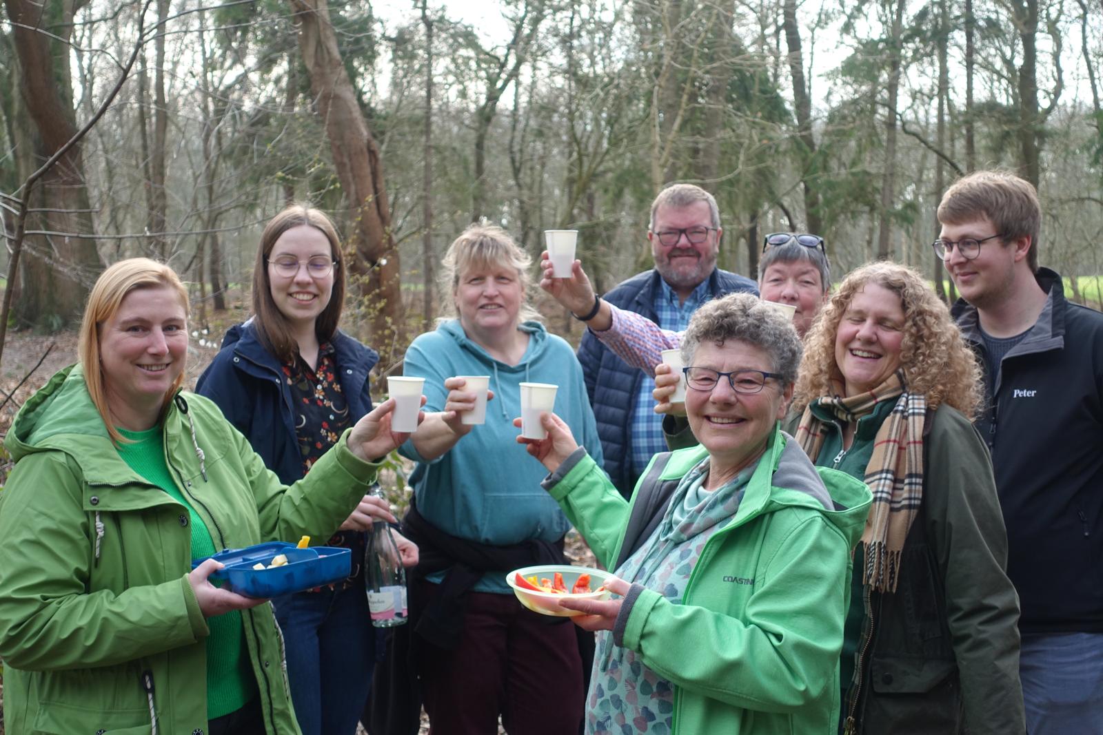 Anfang März fand unser diesjähriger Frühjahrsspaziergang statt. Eine Gruppe von Musikern, teilweise mit Familien und Hunden, machte sich auf den Weg zum Poggenpoel und absolvierte bei bestem Wetter einen 90-minütigen Fußmarsch. Kurze Pausen zur Stärkung durch mitgebrachte Snacks und Getränke durften natürlich nicht fehlen. Zur Belohnung gab es im Anschluss Kaffee und jede Menge köstlichen, selbstgebackenen Kuchen. Die Stimmung war ausgelassen, es wurde viel geklönt, rumgealbert und Tränen gelacht.