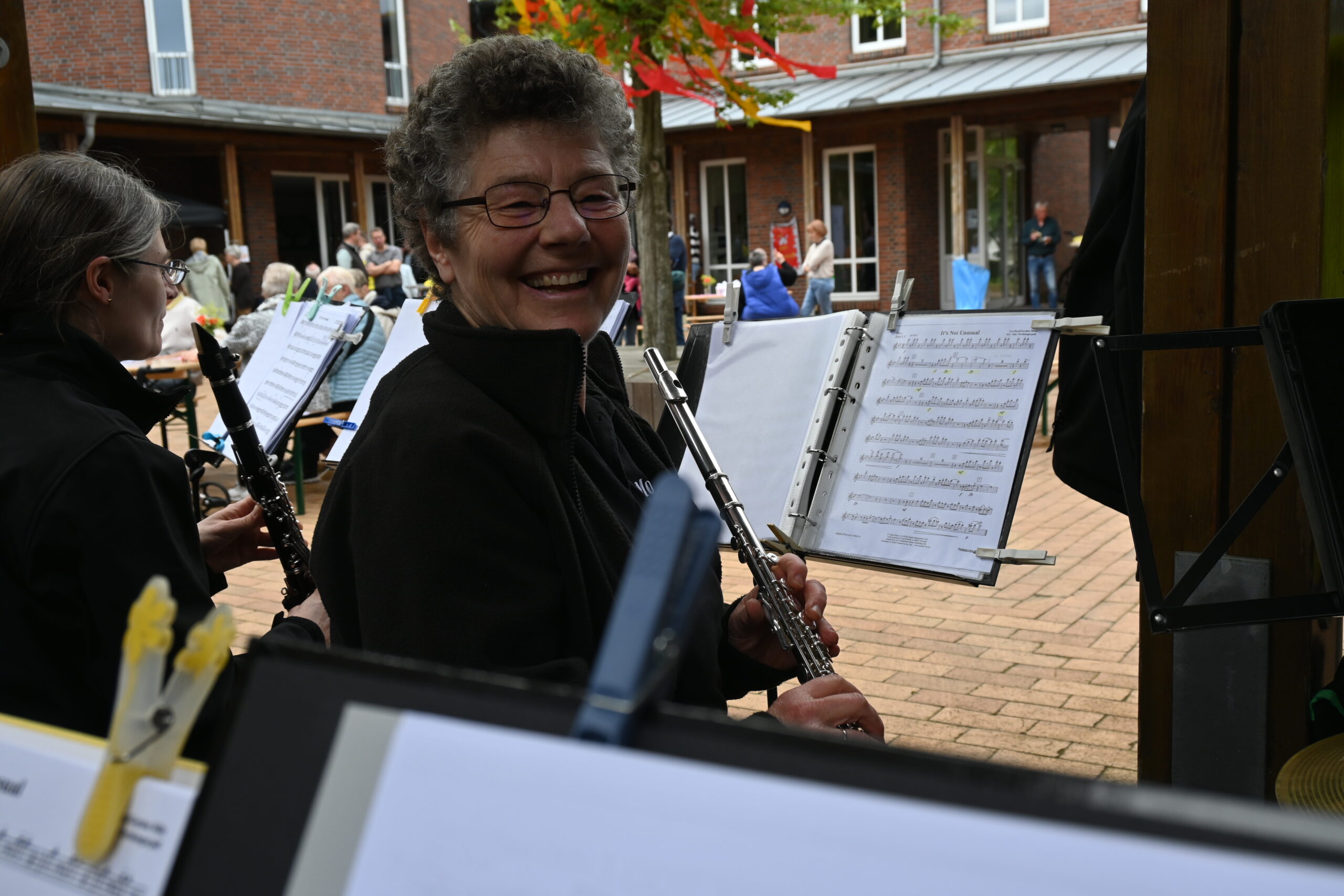 Ebenso stellte die Anfang 2023 gegründete Gitarrengruppe des Musikvereins ihr Können unter Beweis und fand mit ihrem Auftritt großen Anklang auf der Meile. Die drei Frauen mit elektronisch verstärkten Akustikgitarren boten eine ausgewogene Mischung aus Klassikern wie „Let it be“, Friedensliedern wie „Wind of Change“ und zum Anlass passenden plattdeutschen oder Seemannsliedern wie „Dat du min Leevsten büst“.