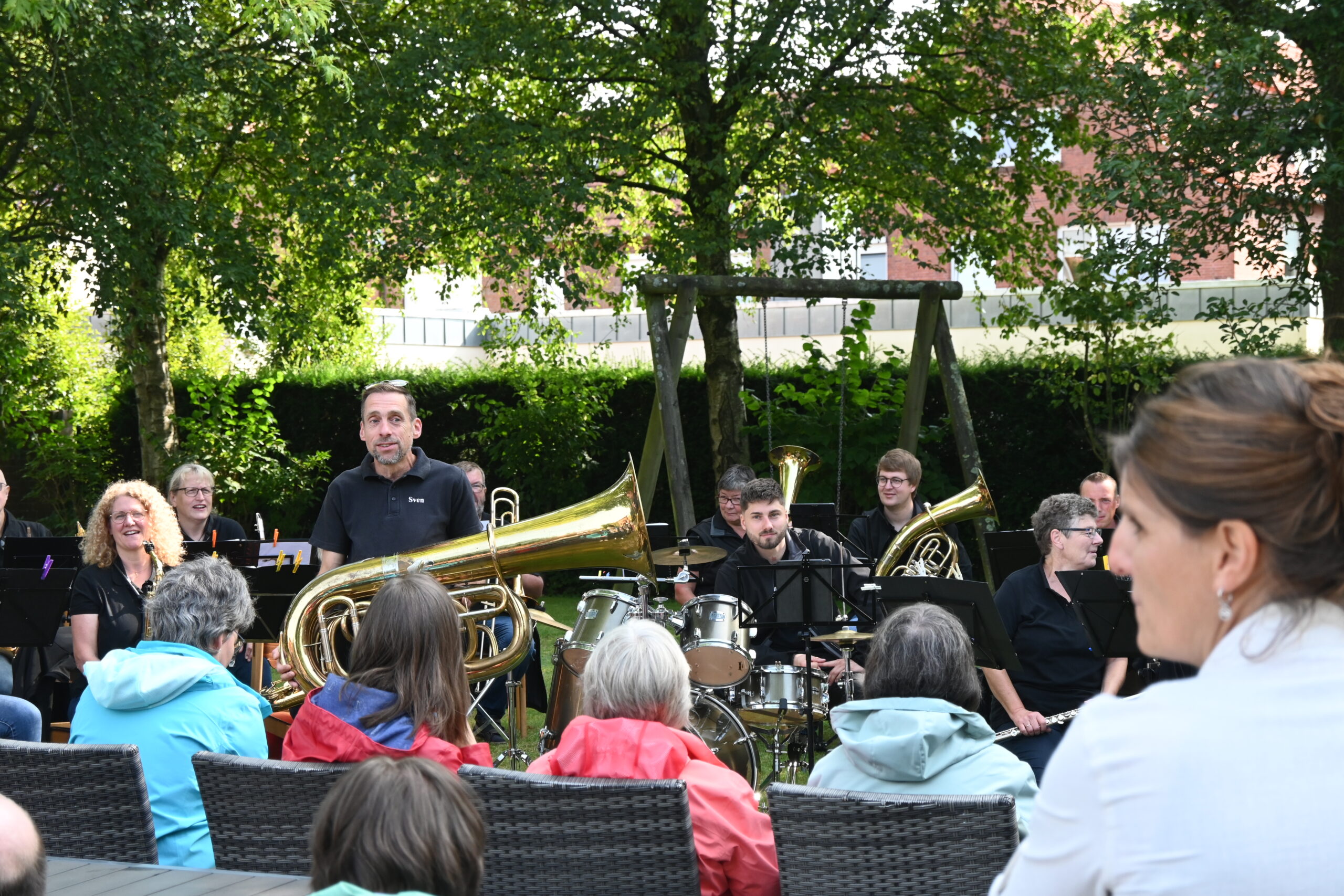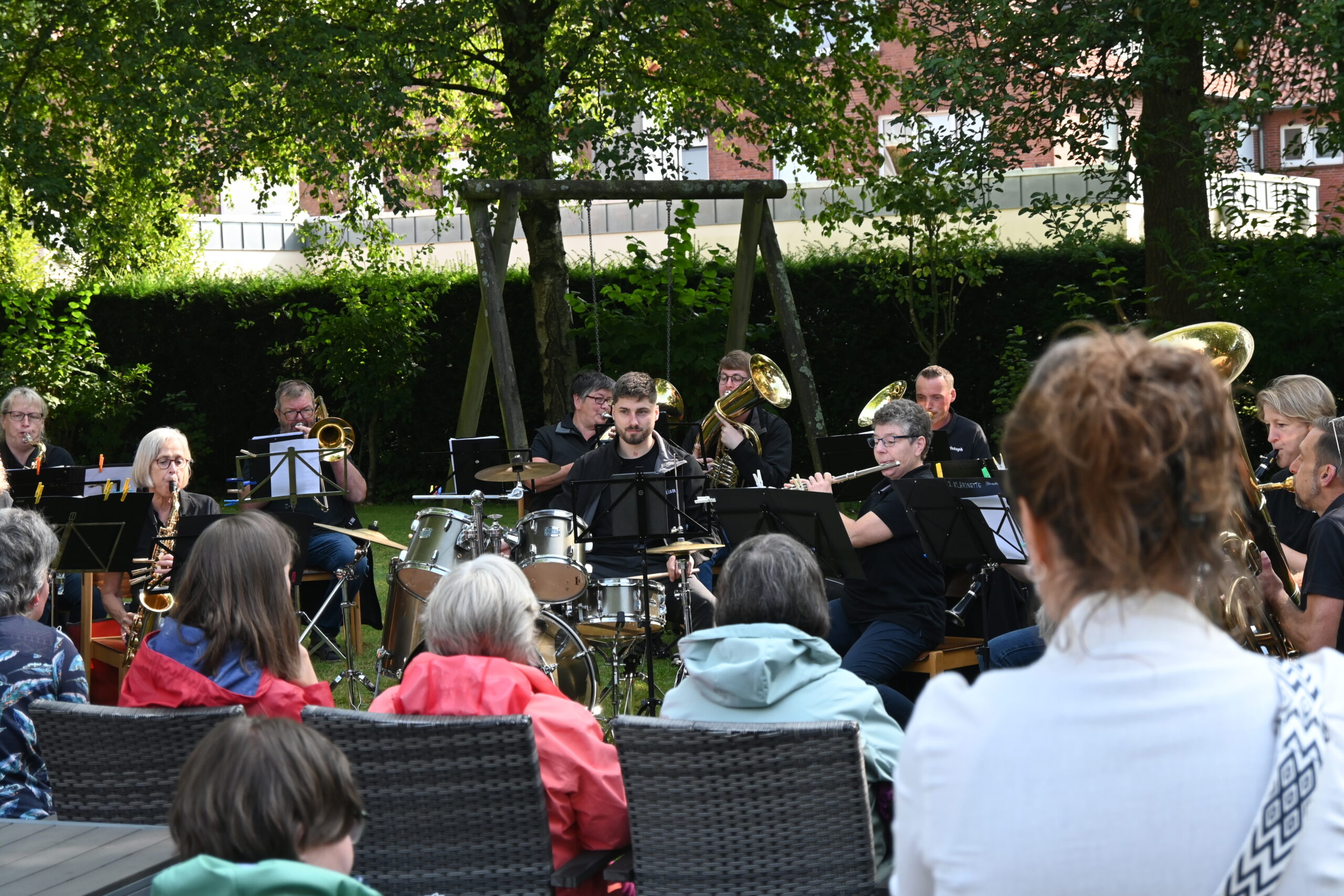 Die „Saxoböhnchen“, die sich während der Corona-Pandemie bei nur eigeschränkt möglichen Registerproben zusammengefunden haben, begeisterten mit einem lebhaften Programm aus Swing, Tango und Pop von „Mister Sandman“ über „Hit the Road Jack“ bis „Pink Panther“. Das Ensemble besteht aus fünf bis sieben Musikern mit Saxophonen in unterschiedlichen Größen und Tonlagen.
